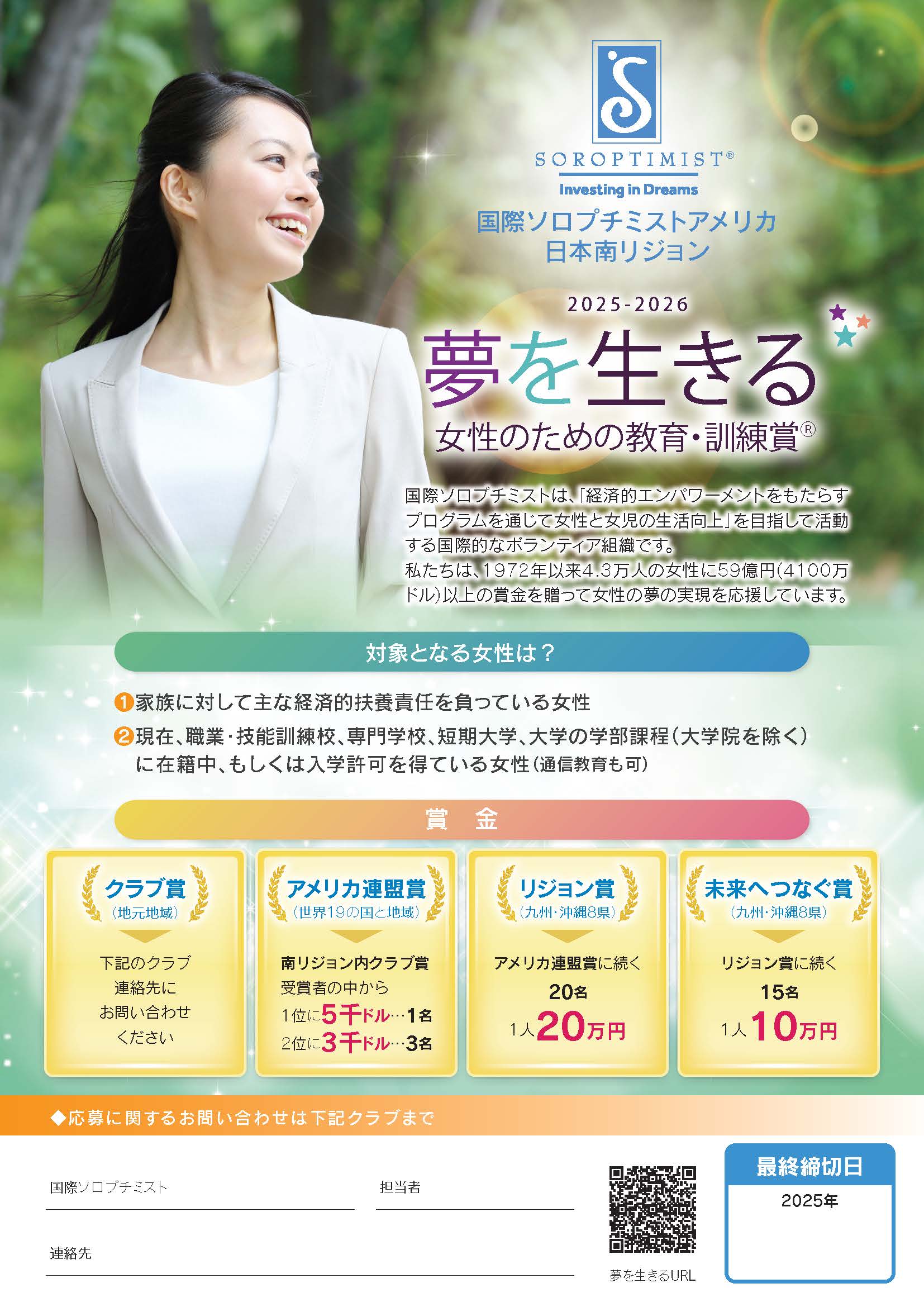 国際ソロプチミスト熊本-わかば クラブ賞1~2名/10万円