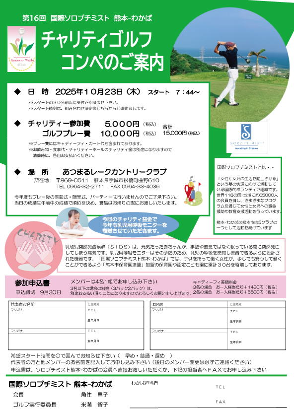 10月23日(木)今年もチャリティーゴルフコンペ開催いたします!