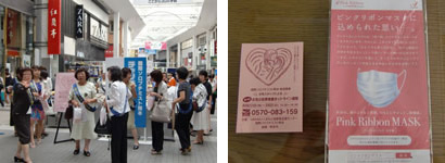 これは、熊本市内ソロプチミスト4クラブの会員が集まり、くまもと被害者支援センタ-の方々と一緒に、下通りアーケード街で行い、私たちSI熊本ーわかばはビプレス前の担当でした。